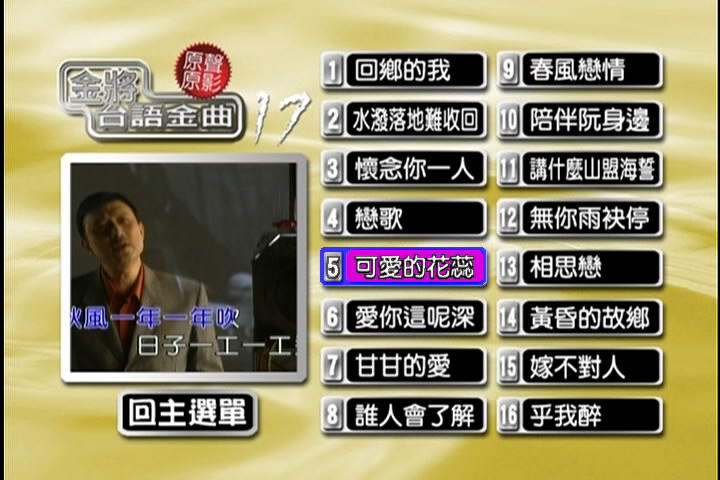 金將台語金曲原聲原影KTV DVD(十七)可家用DVD機播放(DVD一片裝)