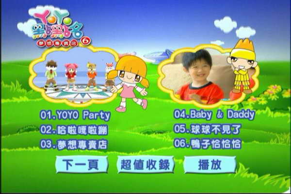 YOYO點點名 6-夢想專賣店 (YOYO Party 哈啦嘎啦蹦 夢想專賣店 Baby&Daddy 球球不見了 鴨子恰恰恰 阿嗚Happy來玩耍 阿媽買魚 風兒吹向那邊 寶貝四季謠 喵喵喵 See you next time YOYO Party-英語版 開麥拉的微笑-YOYO點點名錄影歌曲 夢想專賣店、Baby&Daddy、阿媽買魚-卡拉版) 繁體中文版 (DVD一片裝)